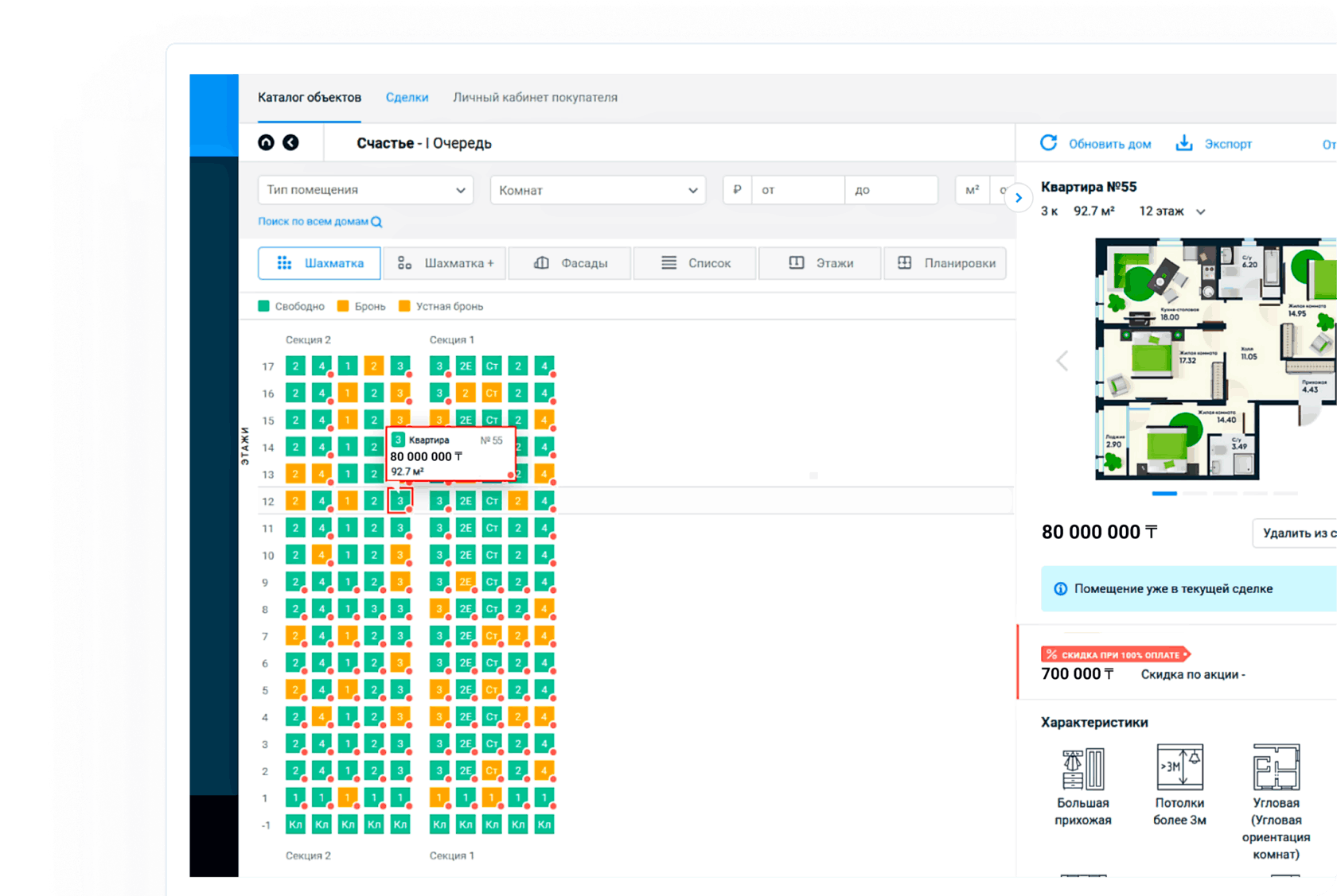 - Гибкая система настройки нужного вам процесса резервирования и фиксации продажи лотов.