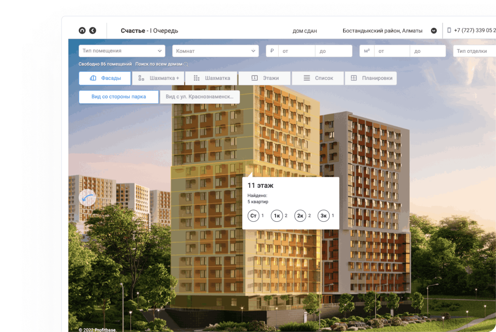 - Поддержка множества режимов отображения проектов - генплан, по-этажная планировка, матрица помещений и другие форматы отображения