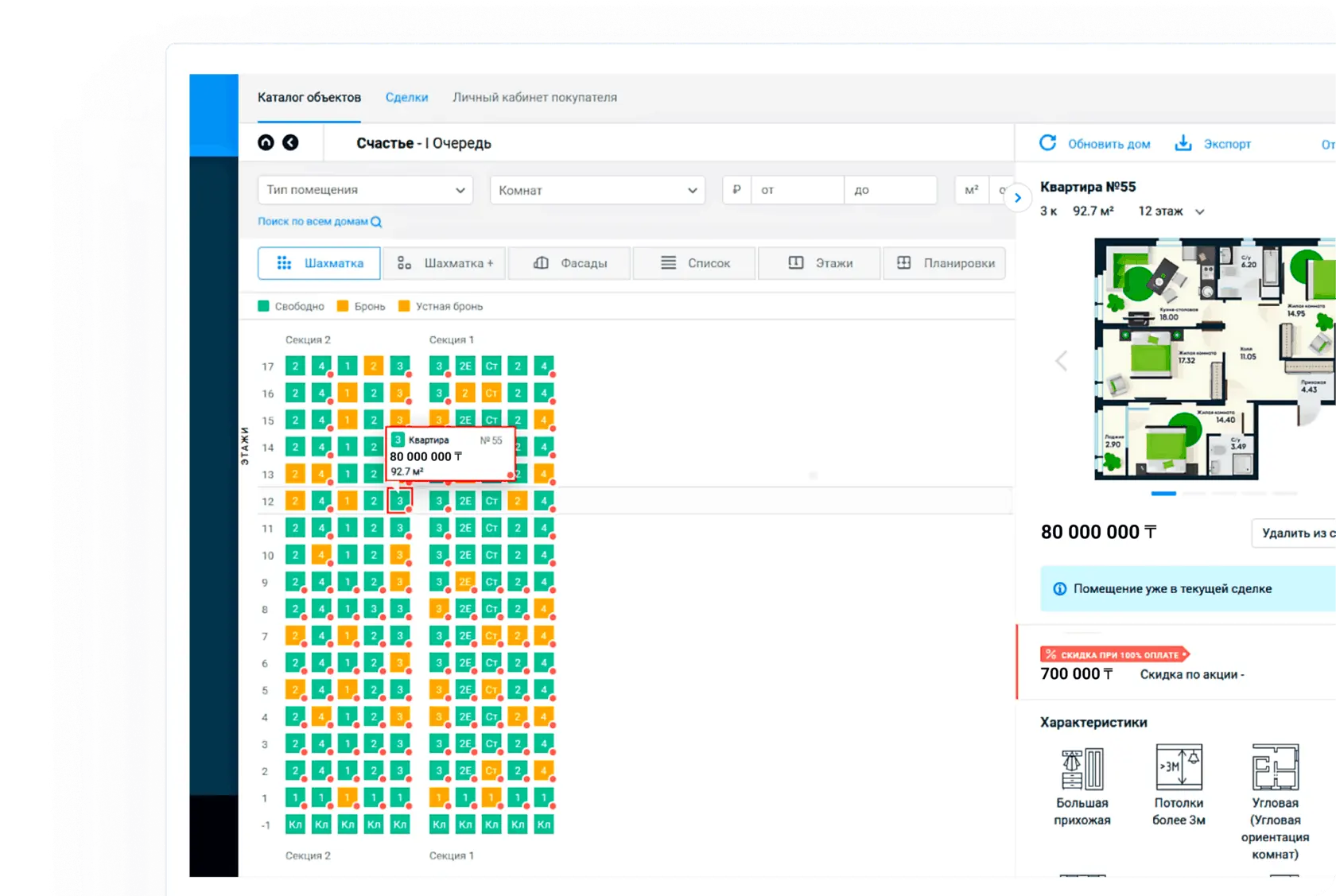 - Гибкая система настройки нужного вам процесса резервирования и фиксации продажи лотов.