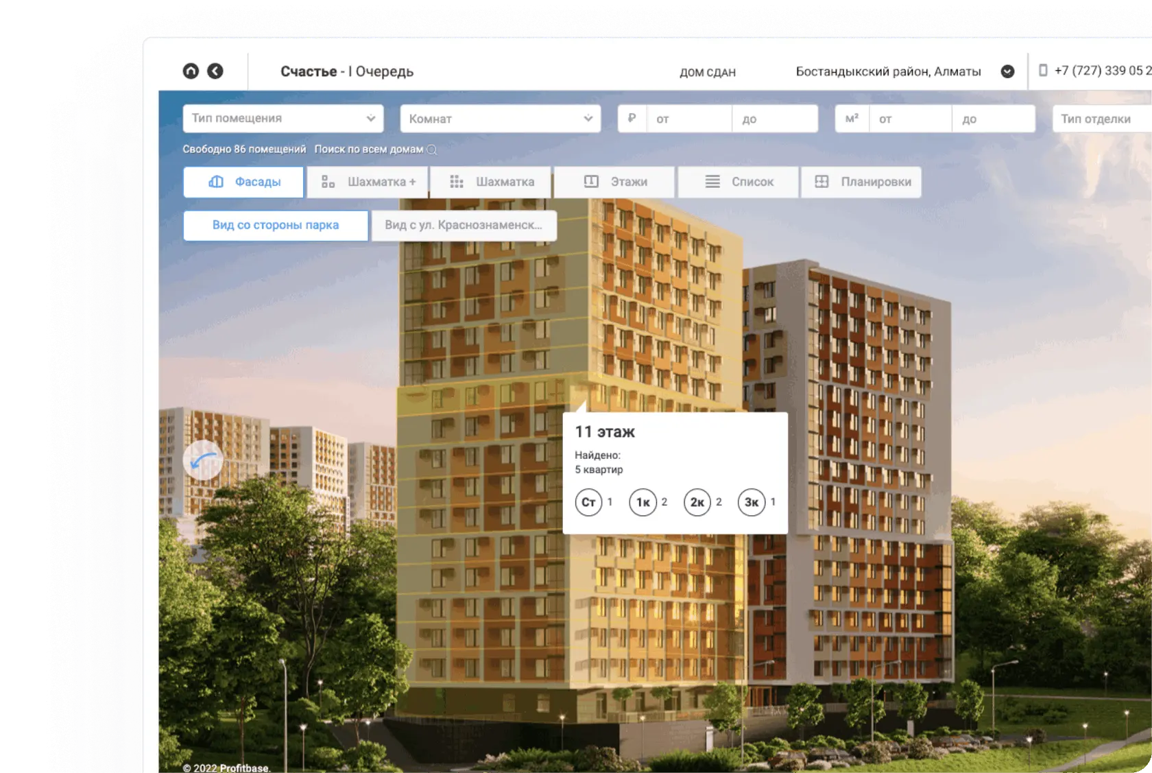 - Поддержка множества режимов отображения проектов - генплан, по-этажная планировка, матрица помещений и другие форматы отображения